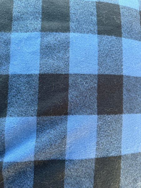 This adult flannel blanket combines bold style with cozy comfort. The front features a classic buffalo plaid pattern in deep navy blue and black, creating a timeless look that works just as well in a modern home as it does in a rustic cabin. The reverse side is lined with luxuriously soft, faux fur in a cool gray tone, offering plush warmth that makes it perfect for chilly evenings.