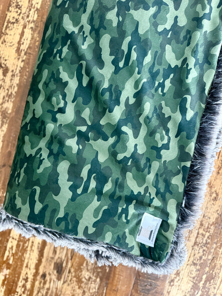 Meet your new go-to cozy essential! This blanket pairs a bold, classic green camo print with an ultra-soft, luxury faux-fur backing that feels like a warm hug. The front features deep and light green camouflage tones—perfect for anyone who loves the outdoors, hunting vibes, or simply a stylish, rugged look.