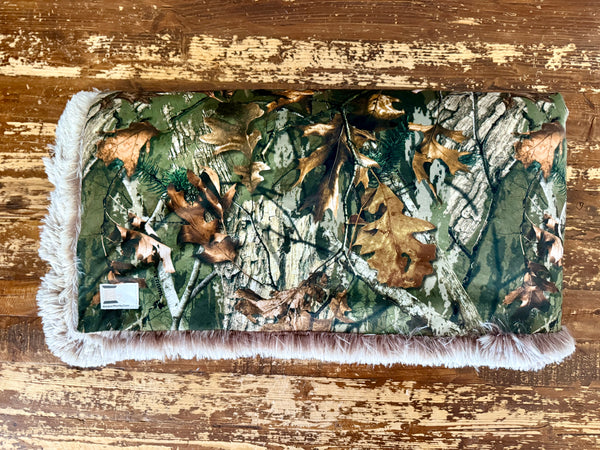 Bring the outdoors inside with this stunning woodland camo blanket. The top features a realistic forest print—complete with rich greens, bark textures, and autumn leaves—making it a perfect pick for hunters, outdoor lovers, cabin décor, or anyone who appreciates a rustic style.