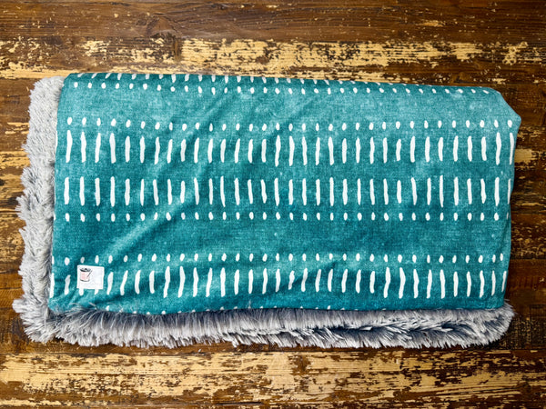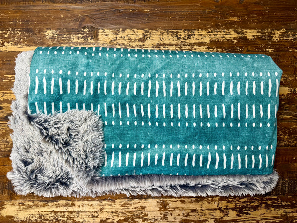 Simple, modern, and incredibly cozy — this minky blanket is made for those who love effortless style paired with serious comfort. The rich teal front is accented with soft white dash details, creating a clean, contemporary look that feels both calming and sophisticated. It’s the perfect pop of color while still remaining neutral enough to complement almost any space.
