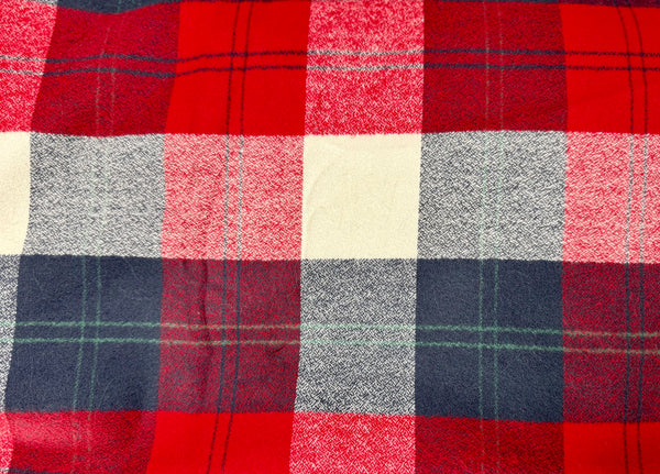 This blanket features Mammoth flannel, known for its thicker, ultra-soft feel and cozy weight. The flannel side showcases a classic red, navy, and cream plaid with a warm, cabin-inspired look that’s perfect for fall and winter.